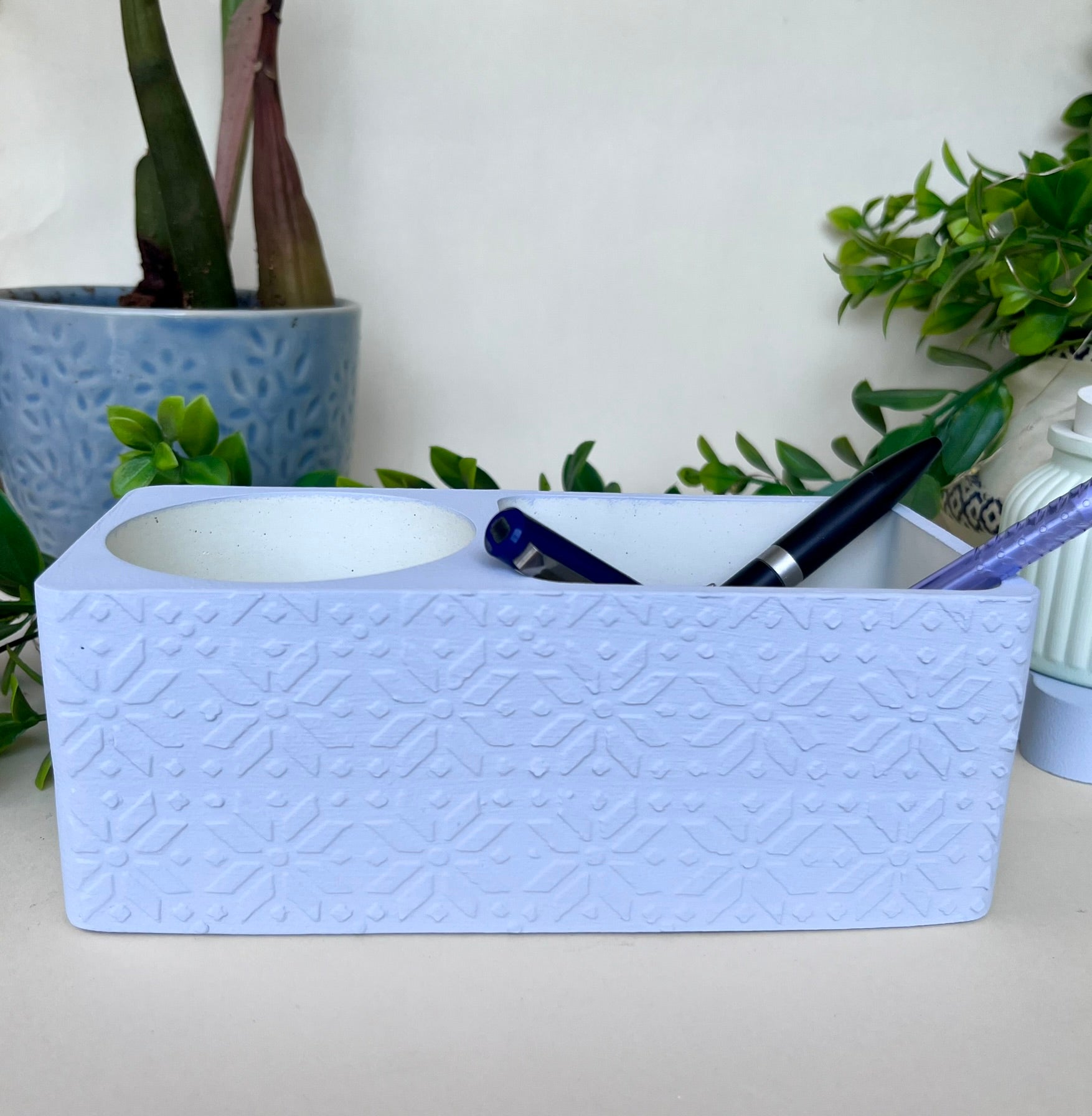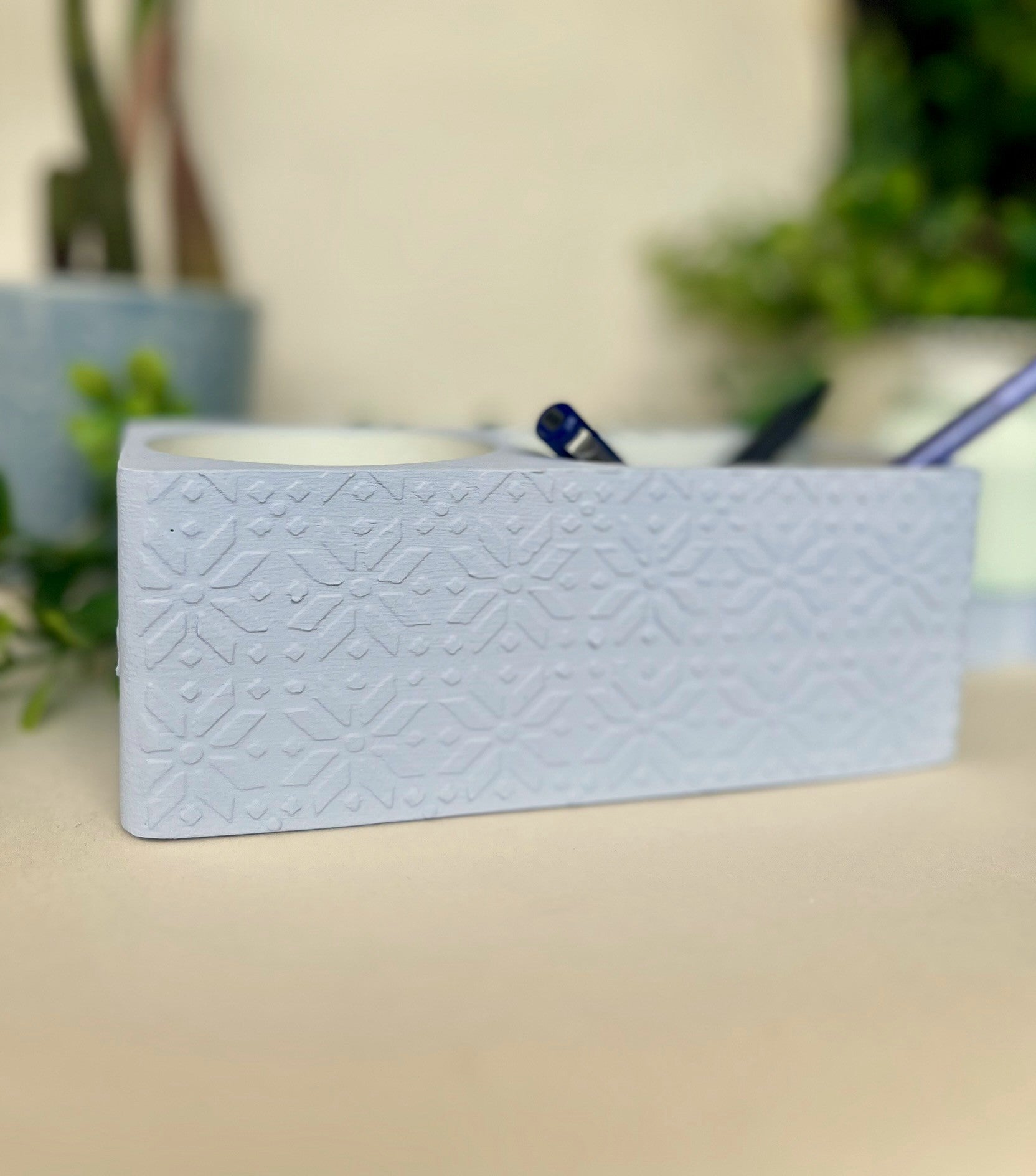 Handcrafted pen stand is crafted from raw concrete and delicately hand-painted, blending structure with soul. Designed to hold your stationery while elevating your desk with an artistic, earthy charm.